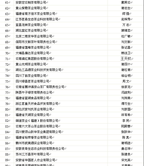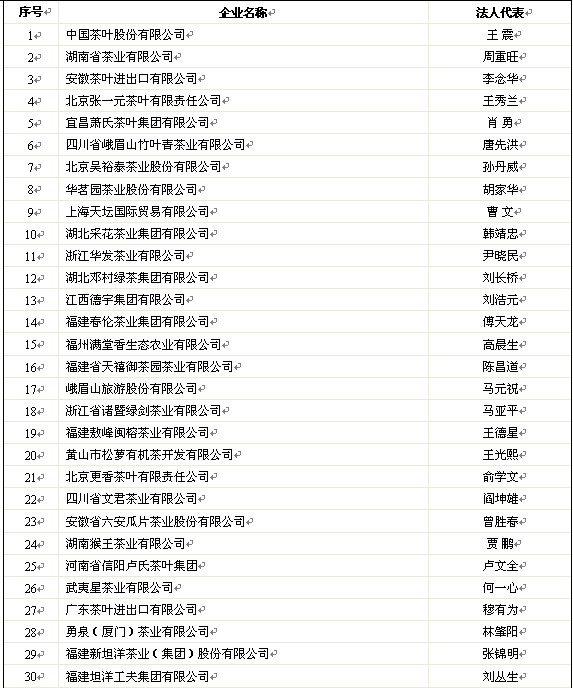 根據(jù)《關(guān)于開展“2011年度中國茶葉行業(yè)百強(qiáng)企業(yè)”調(diào)查工作的通知》(中茶協(xié)[2011]第21號)的相關(guān)規(guī)定,在通過2010年度企業(yè)財(cái)務(wù)審計(jì)報(bào)告和取得相關(guān)認(rèn)證的茶葉企業(yè)自愿申報(bào)與各省市茶葉組織審核、推薦的基礎(chǔ)上,經(jīng)中國茶葉流通協(xié)會組織專家對申報(bào)企業(yè)進(jìn)行嚴(yán)謹(jǐn)認(rèn)真的復(fù)審,擬出《2011年度中國茶葉行業(yè)百強(qiáng)企業(yè)候選名單》,并再次經(jīng)各?。▍^(qū)、市)推薦單位復(fù)核確認(rèn)。