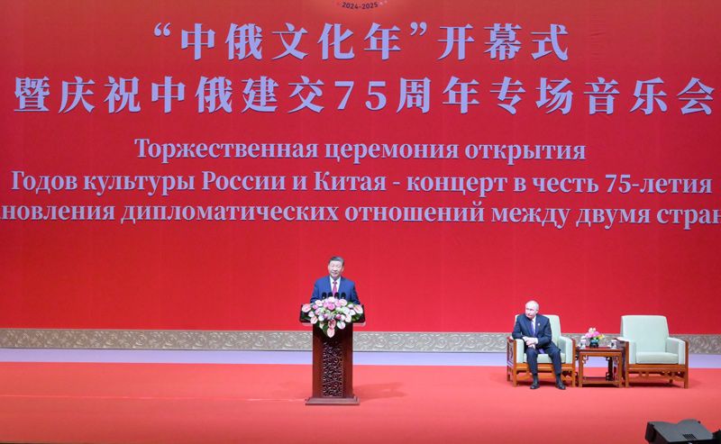 習(xí)近平指出,今年是中俄建交75周年。中俄關(guān)系四分之三個(gè)世紀(jì)的風(fēng)雨歷程表明,不斷鞏固和發(fā)展中俄永久睦鄰友好、全面戰(zhàn)略協(xié)作、互利合作共贏,符合兩國(guó)和兩國(guó)人民的根本利益,順應(yīng)國(guó)際社會(huì)期待和時(shí)代發(fā)展潮流,具有不可替代的重要意義?;マk主題年已經(jīng)成為中俄人文交流的優(yōu)良傳統(tǒng),也是兩國(guó)關(guān)系發(fā)展史上的特色和亮點(diǎn),受到兩國(guó)人民普遍歡迎。去年,我和普京總統(tǒng)商定2024-2025年舉辦“中俄文化年”。今天,雙方正式啟動(dòng)這一文化盛事。雙方將舉辦一系列豐富多彩的文化交流項(xiàng)目,進(jìn)一步釋放兩國(guó)文化合作潛力,共同開(kāi)創(chuàng)中俄文化交流的新未來(lái)。相信這將為中俄友好的世代傳承、為兩國(guó)人民的相知相親注入新動(dòng)力。